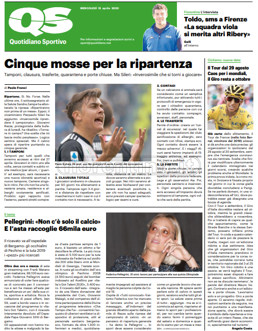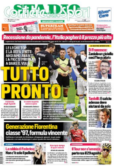 Queste le prime pagine dei quotidiani di Corriere dello Sport, Corriere dello Sport Stadio, Qs-La Nazione, Tuttosport e Gazzetta dello Sport in edicola questa mattina: