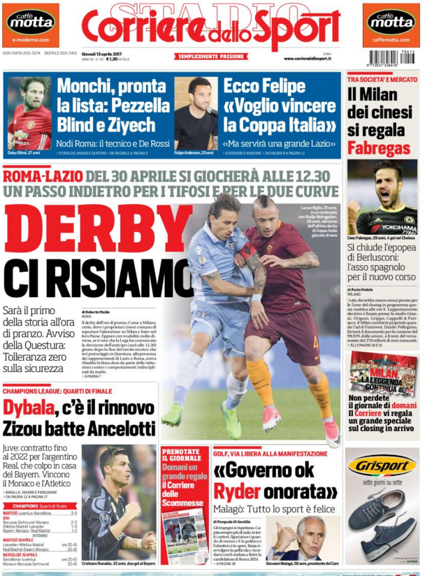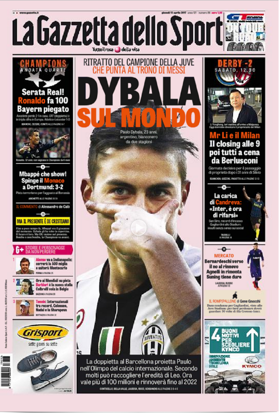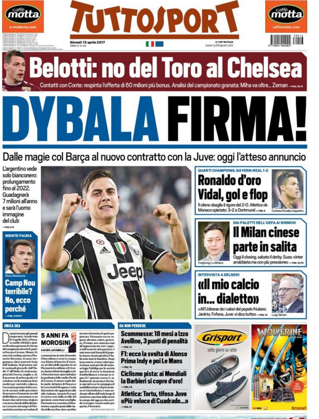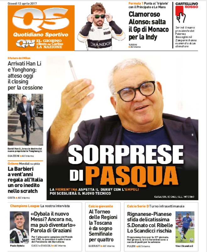 Queste le prime pagine dei quotidiani di Corriere dello Sport, Corriere dello Sport Stadio, Qs, Tuttosport e Gazzetta in edicola questa mattina: