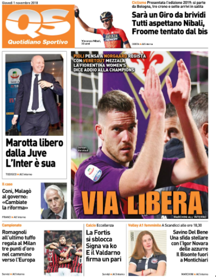 Queste le prime pagine dei quotidiani di Corriere dello Sport, Corriere dello Sport Stadio, Qs-La Nazione, Tuttosport e Gazzetta dello Sport in edicola questa mattina: