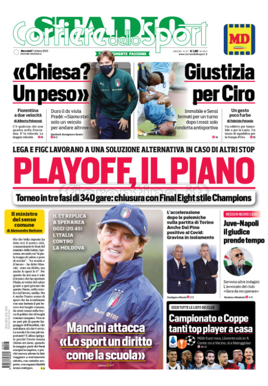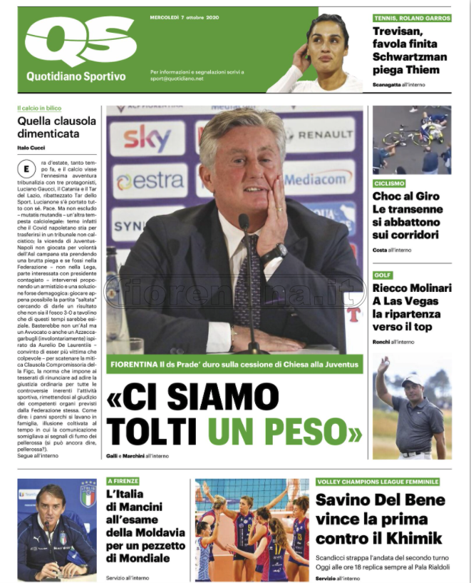 Queste le prime pagine di Corriere dello Sport, Corriere dello Sport Stadio, Qs-La Nazione, Tuttosport e Gazzetta dello Sport in edicola questa mattina