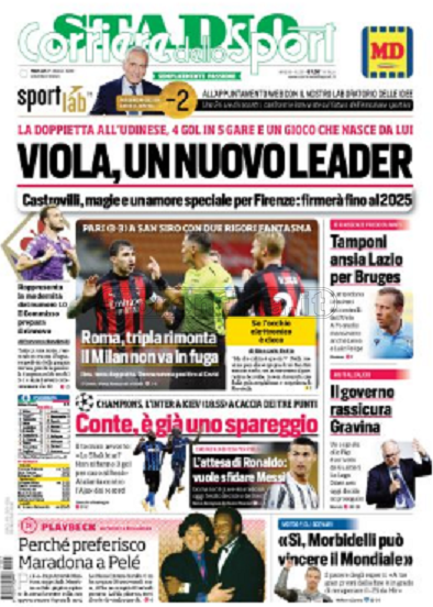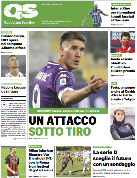 Queste le prime pagine dei quotidiani di Corriere dello Sport, Corriere dello Sport Stadio, Qs-La Nazione, Tuttosport e Gazzetta dello Sport in edicola questa mattina: