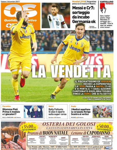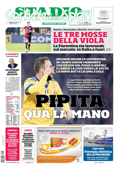 Queste le prime pagine dei quotidiani di Corriere dello Sport, Corriere dello Sport Stadio, Qs-La Nazione, Tuttosport e Gazzetta dello Sport in edicola questa mattina: