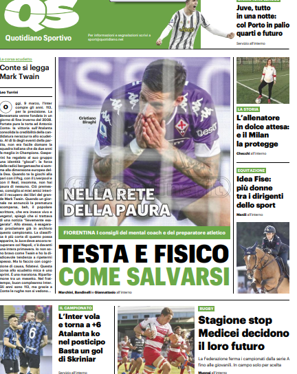 Queste le prime pagine dei quotidiani di Corriere dello Sport, Corriere dello Sport Stadio, Qs-La Nazione, Tuttosport e Gazzetta dello Sport in edicola questa mattina: