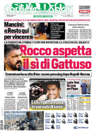 Queste le prime pagine dei quotidiani di Corriere dello Sport, Corriere dello Sport Stadio, Qs-La Nazione, Tuttosport e Gazzetta dello Sport in edicola questa mattina: