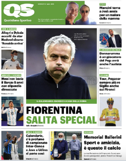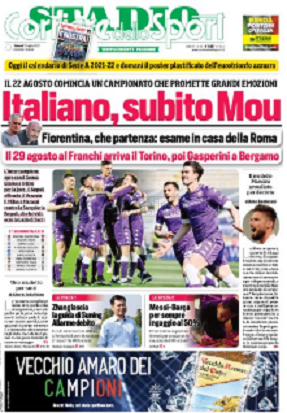 Queste le prime pagine dei quotidiani di Corriere dello Sport, Corriere dello Sport Stadio, Qs-La Nazione, Tuttosport e Gazzetta dello Sport in edicola questa mattina: