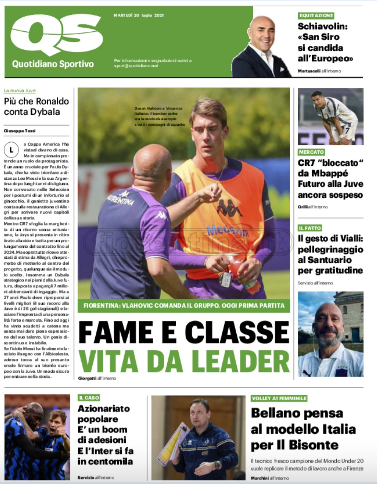 Queste le prime pagine dei quotidiani di Corriere dello Sport, Corriere dello Sport Stadio, Qs-La Nazione, Tuttosport e Gazzetta dello Sport in edicola questa mattina: