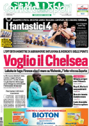 Quotidiani: la prima pagina di Qs, Stadio, Gazzetta, Corriere dello Sport, Tuttosport