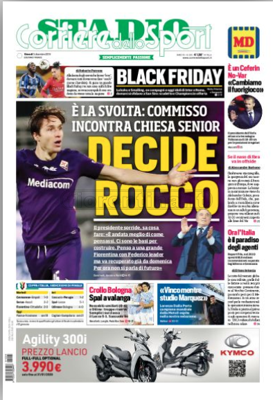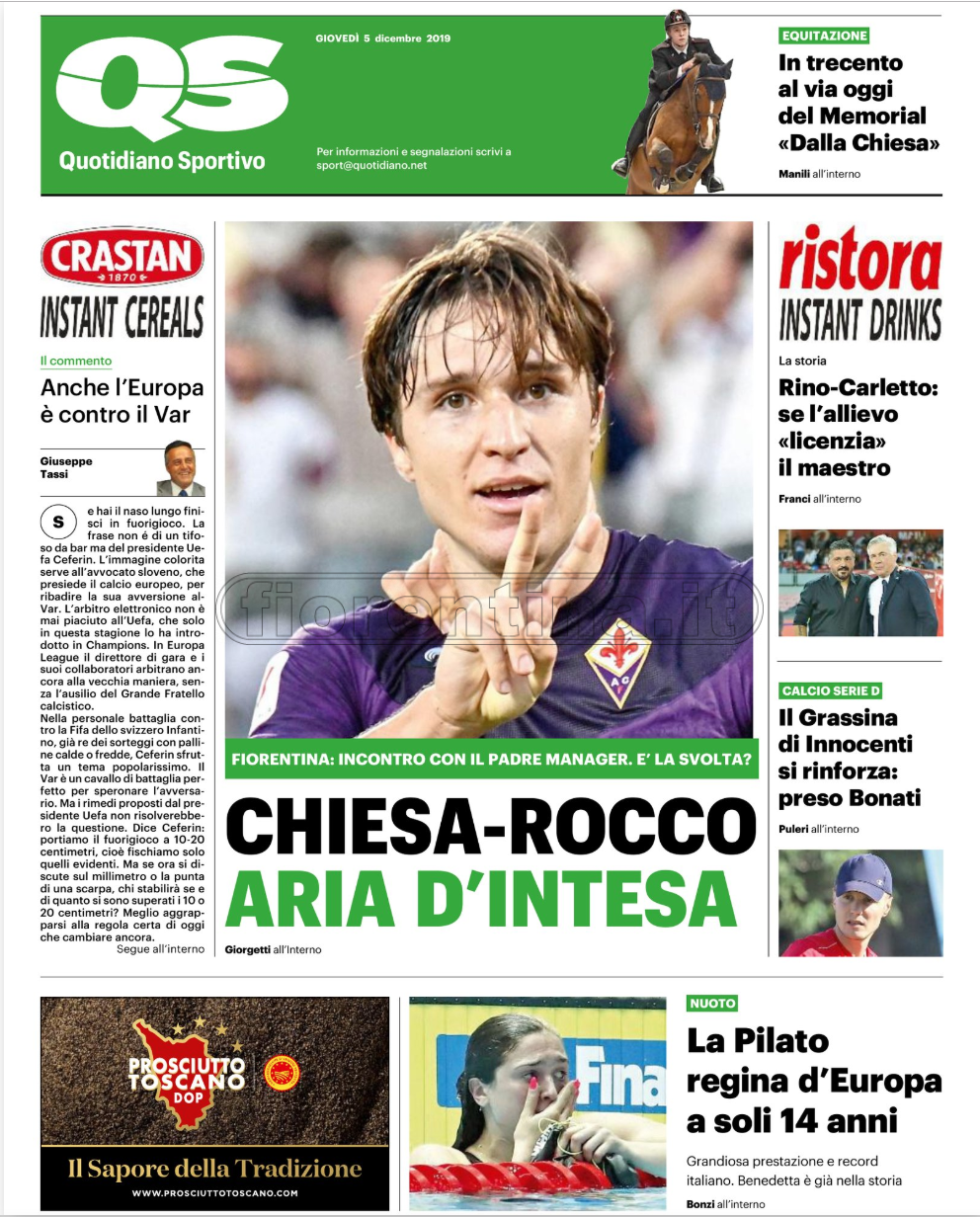Queste le prime pagine dei quotidiani di Corriere dello Sport, Corriere dello Sport Stadio, Qs-La Nazione, Tuttosport e Gazzetta dello Sport in edicola questa mattina: