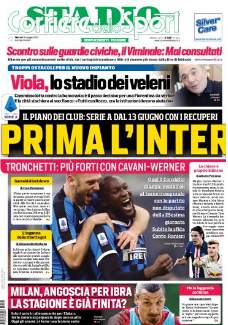 Queste le prime pagine dei quotidiani di Corriere dello Sport, Corriere dello Sport Stadio, Qs-La Nazione, Tuttosport e Gazzetta dello Sport in edicola questa mattina: