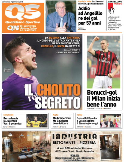 Queste le prime pagine dei quotidiani di Corriere dello Sport, Corriere dello Sport Stadio, Qs-La Nazione, Tuttosport e Gazzetta dello Sport in edicola: