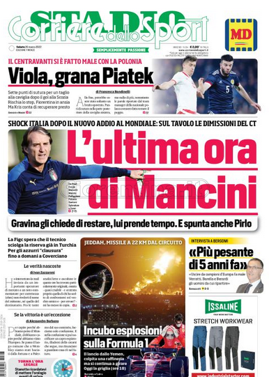 Queste le prime pagine dei quotidiani di Corriere dello Sport, Corriere dello Sport Stadio, Qs-La Nazione, Tuttosport e Gazzetta dello Sport in edicola questa mattina: