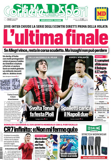 Queste le prime pagine dei quotidiani di Corriere dello Sport, Corriere dello Sport Stadio, Qs-La Nazione, Tuttosport e Gazzetta dello Sport in edicola questa mattina: