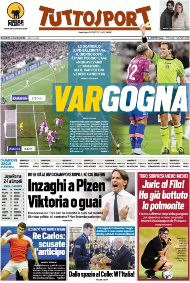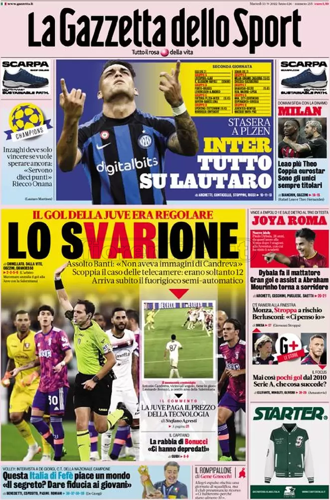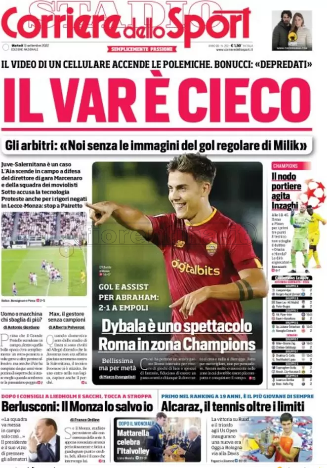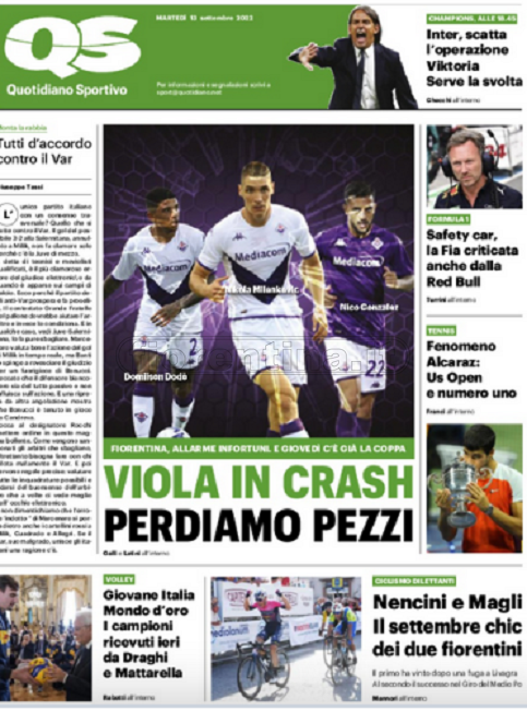 Queste le prime pagine dei quotidiani di Corriere dello Sport, Corriere dello Sport Stadio, Qs-La Nazione, Tuttosport e Gazzetta dello Sport in edicola questa mattina: