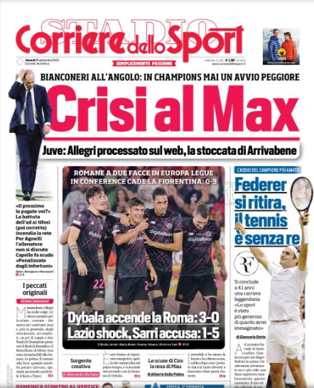 Queste le prime pagine dei principali quotidiani sportivi nazionali e locali in edicola questa mattina