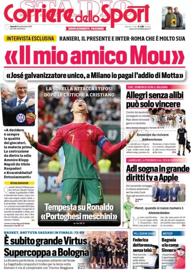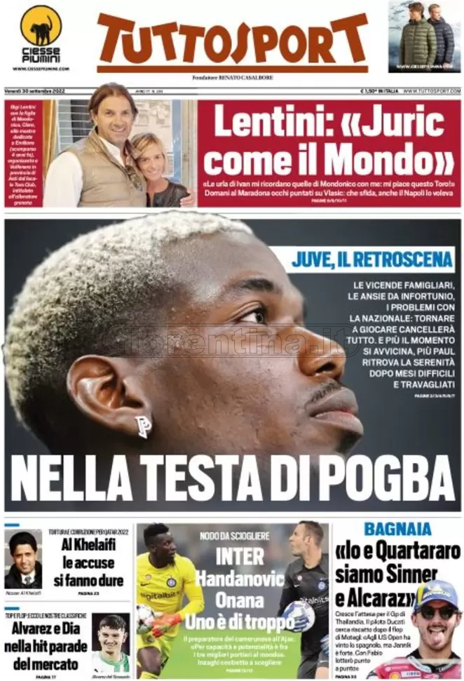 Queste le prime pagine dei quotidiani di Corriere dello Sport, Corriere dello Sport Stadio, Qs-La Nazione, Tuttosport e Gazzetta dello Sport in edicola questa mattina:
