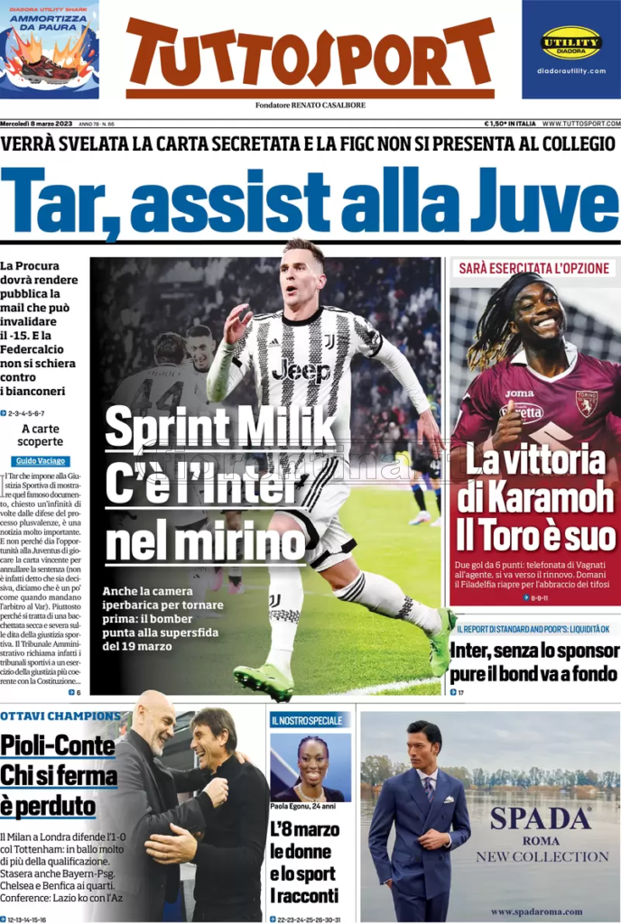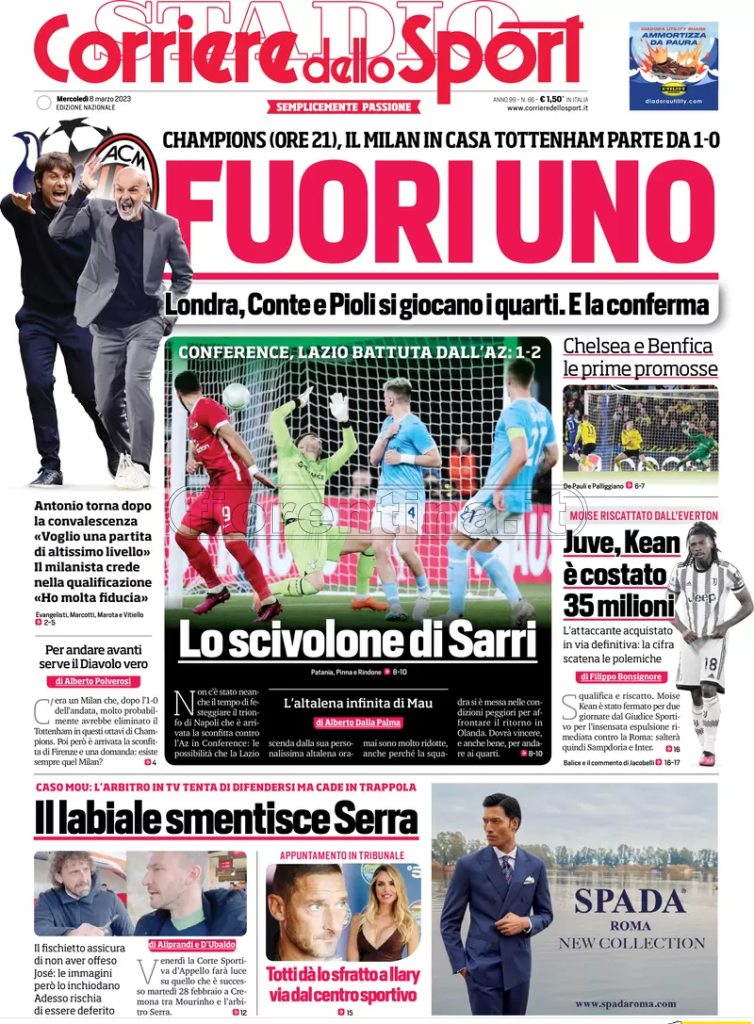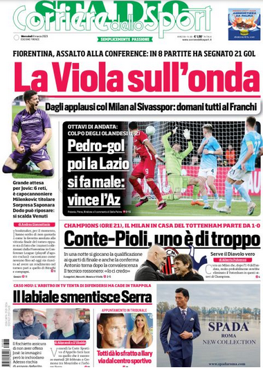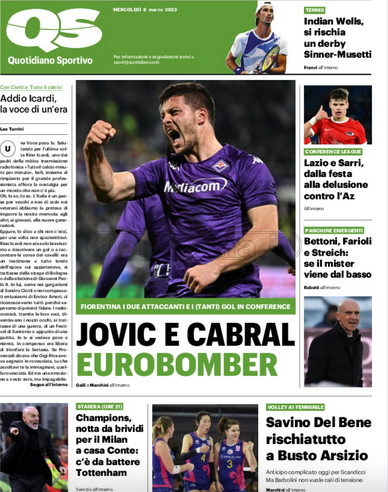 Queste le prime pagine dei quotidiani di Corriere dello Sport, Corriere dello Sport Stadio, Qs-La Nazione, Tuttosport e Gazzetta dello Sport in edicola questa mattina: