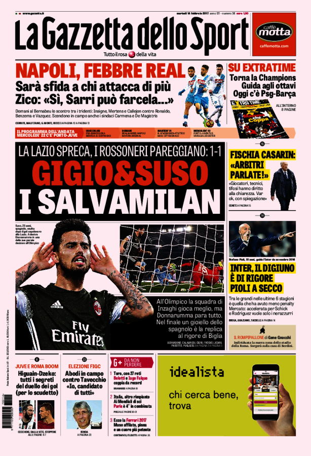 Queste le prime pagine dei quotidiani di Corriere dello Sport, Corriere dello Sport Stadio, Qs, Tuttosport e Gazzetta in edicola questa mattina:
