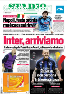 Queste le prime pagine dei quotidiani di Corriere dello Sport, Corriere dello Sport Stadio, Qs-La Nazione, Tuttosport e Gazzetta dello Sport in edicola questa mattina
