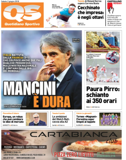 Queste le prime pagine dei quotidiani di Corriere dello Sport, Corriere dello Sport Stadio, Qs-La Nazione, Tuttosport e Gazzetta dello Sport in edicola questa mattina:
