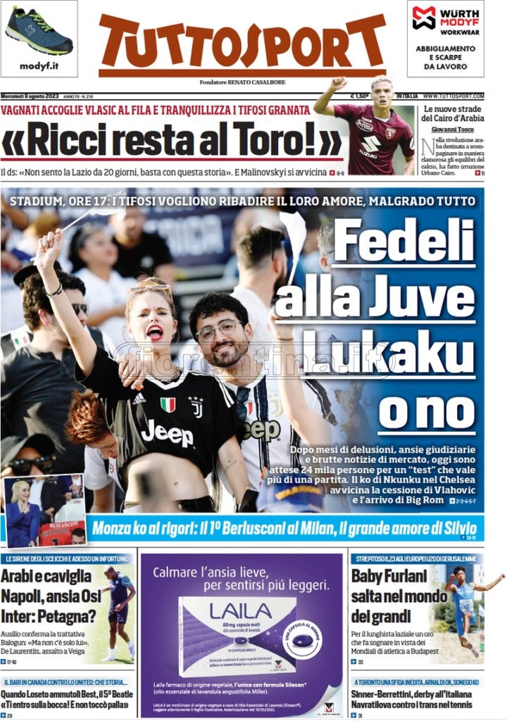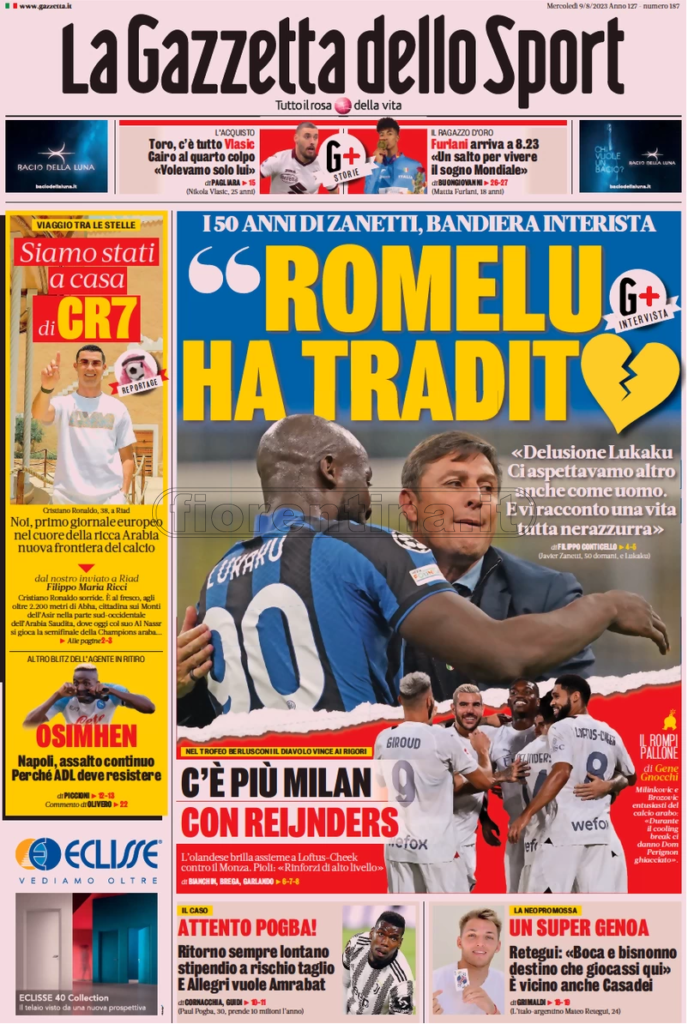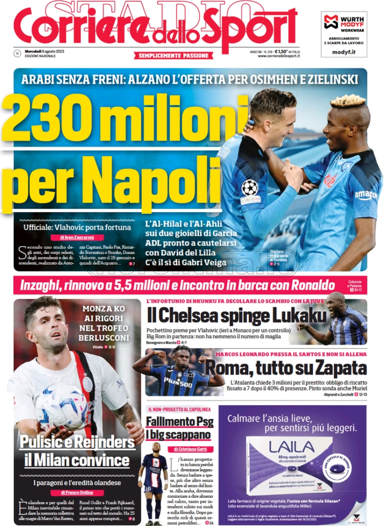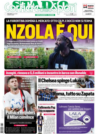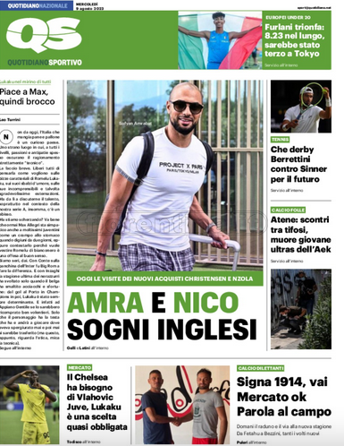 Queste le prime pagine dei quotidiani di Corriere dello Sport, Corriere dello Sport Stadio, Qs-La Nazione, Tuttosport e Gazzetta dello Sport in edicola questa mattina: