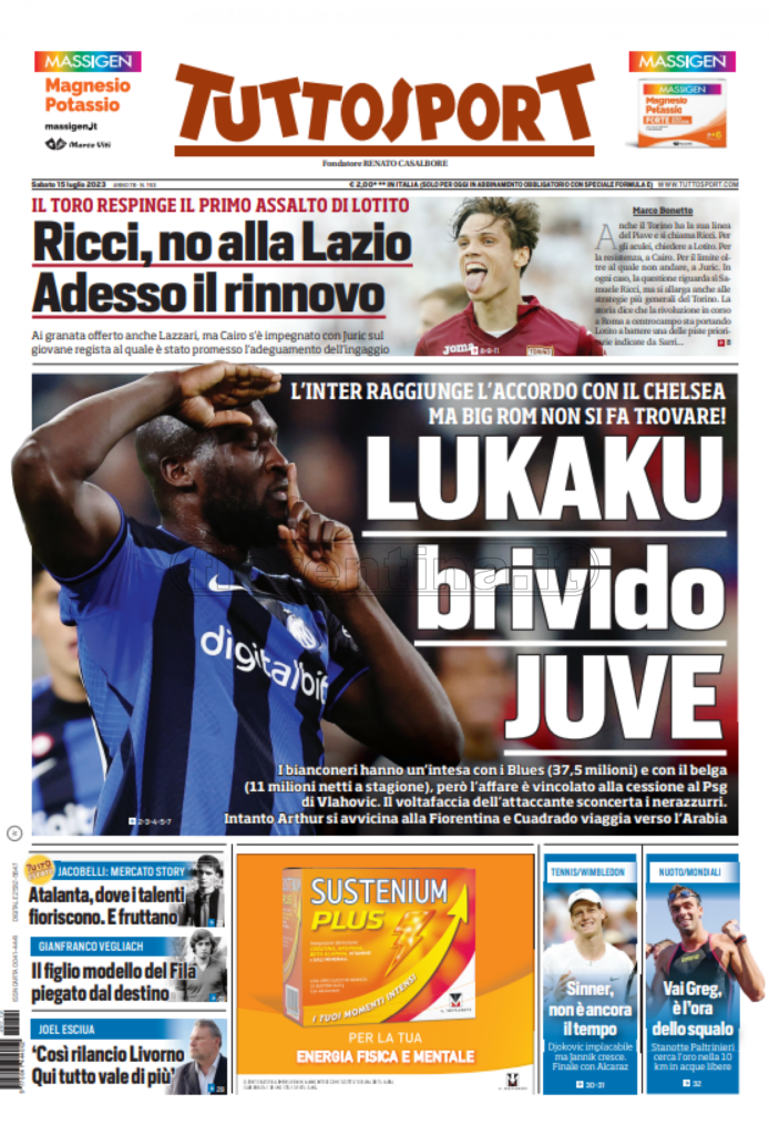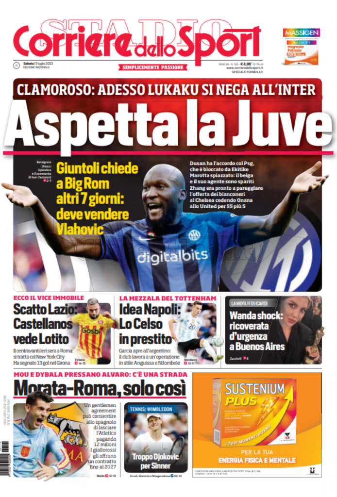 Queste le prime pagine dei quotidiani di Corriere dello Sport, Corriere dello Sport Stadio, Qs-La Nazione, Tuttosport e Gazzetta dello Sport in edicola questa mattina: