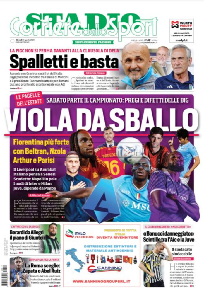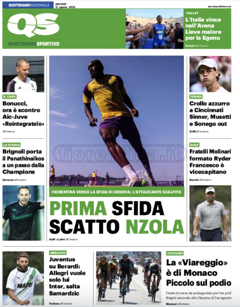 QuesteΒ le prime pagine dei quotidiani diΒ Corriere dello Sport,Β Corriere dello Sport Stadio,Β Qs-La Nazione,Β TuttosportΒ eΒ Gazzetta dello SportΒ in edicola questa mattina: