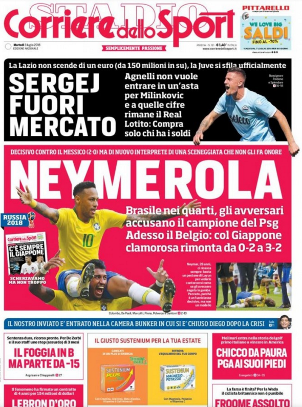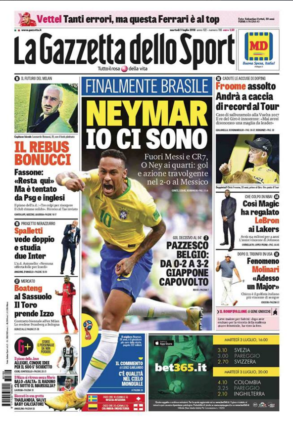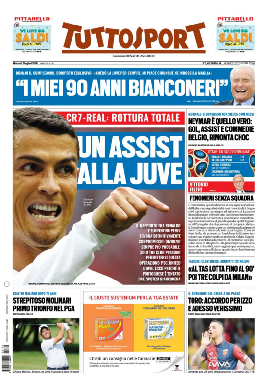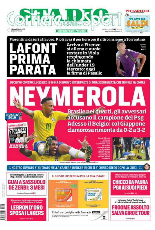 Queste le prime pagine dei quotidiani di Corriere dello Sport, Corriere dello Sport Stadio, Qs-La Nazione, Tuttosport e Gazzetta dello Sport in edicola questa mattina: