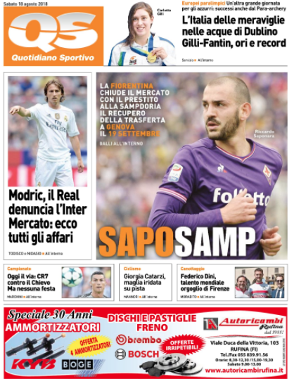 Quotidiani: la prima pagina di Qs, Stadio, Gazzetta, Corriere dello Sport, Tuttosport
