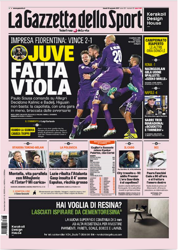 Queste le prime pagine dei quotidiani di Corriere dello Sport, Corriere dello Sport Stadio, Qs, Tuttosport e Gazzetta in edicola questa mattina: