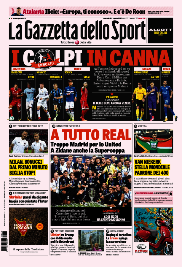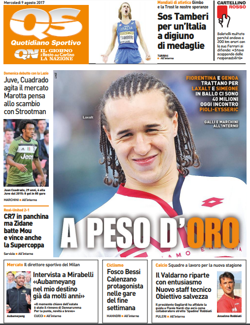 Queste le prime pagine dei quotidiani di Corriere dello Sport, Corriere dello Sport Stadio, Qs, Tuttosport e Gazzetta in edicola questa mattina: