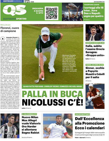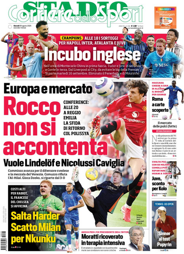 Queste le prime pagine dei quotidiani di Corriere dello Sport Stadio, Qs-La Nazione, Tuttosport e Gazzetta dello Sport in edicola questa mattina: