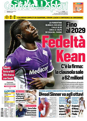 Quotidiani: la prima pagina di Qs, Stadio, Gazzetta, Corriere dello Sport, Tuttosport