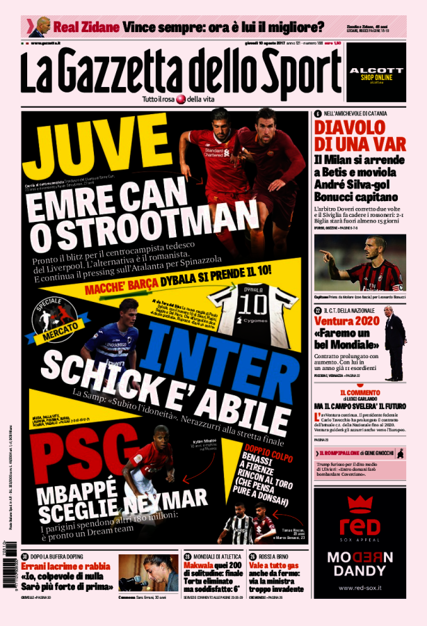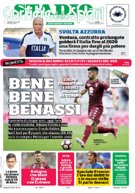 Queste le prime pagine dei quotidiani di Corriere dello Sport, Corriere dello Sport Stadio, Qs, Tuttosport e Gazzetta in edicola questa mattina: