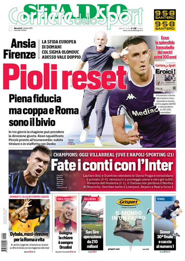 Queste le prime pagine dei quotidiani di Corriere dello Sport Stadio, Qs-La Nazione, Tuttosport e Gazzetta dello Sport in edicola questa mattina: