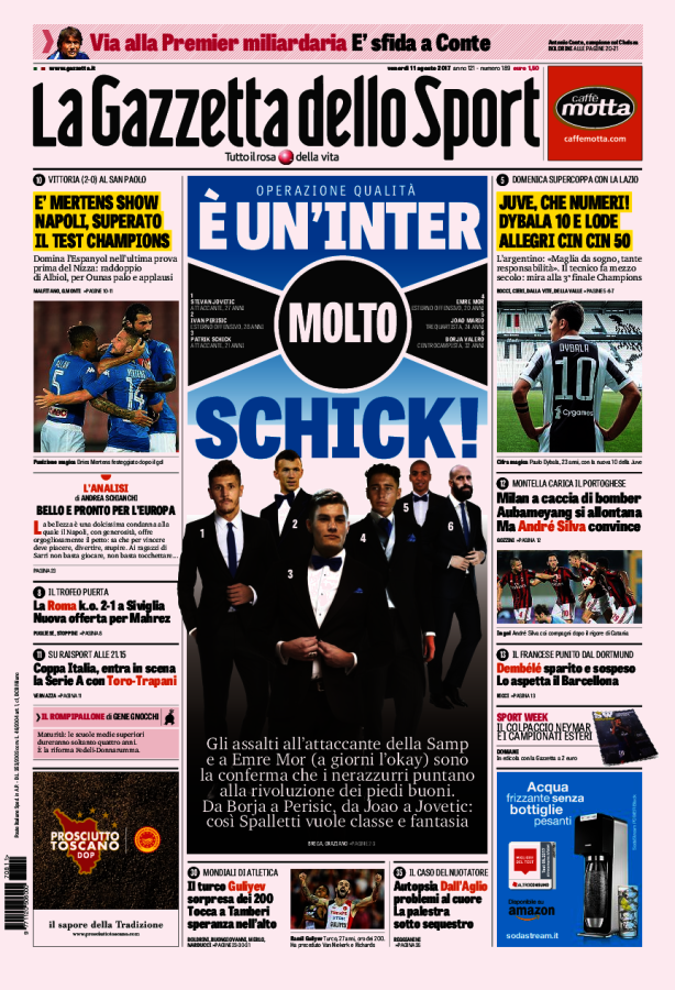 Queste le prime pagine dei quotidiani di Corriere dello Sport, Corriere dello Sport Stadio, Qs, Tuttosport e Gazzetta in edicola questa mattina: