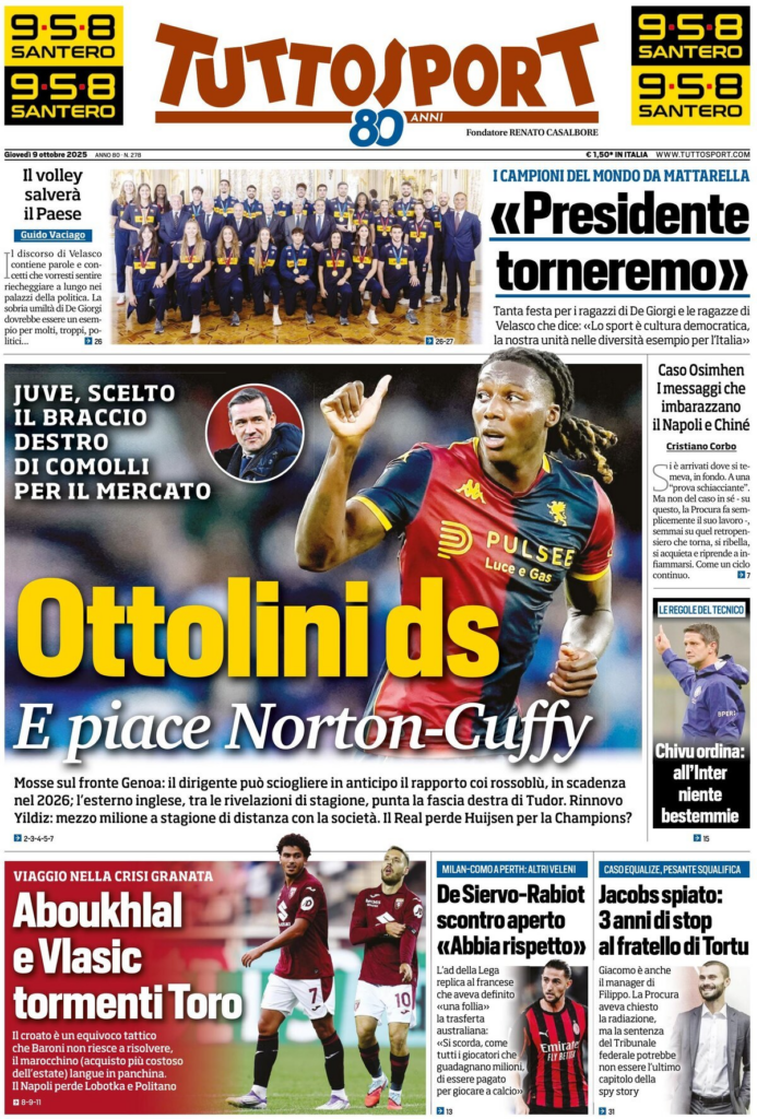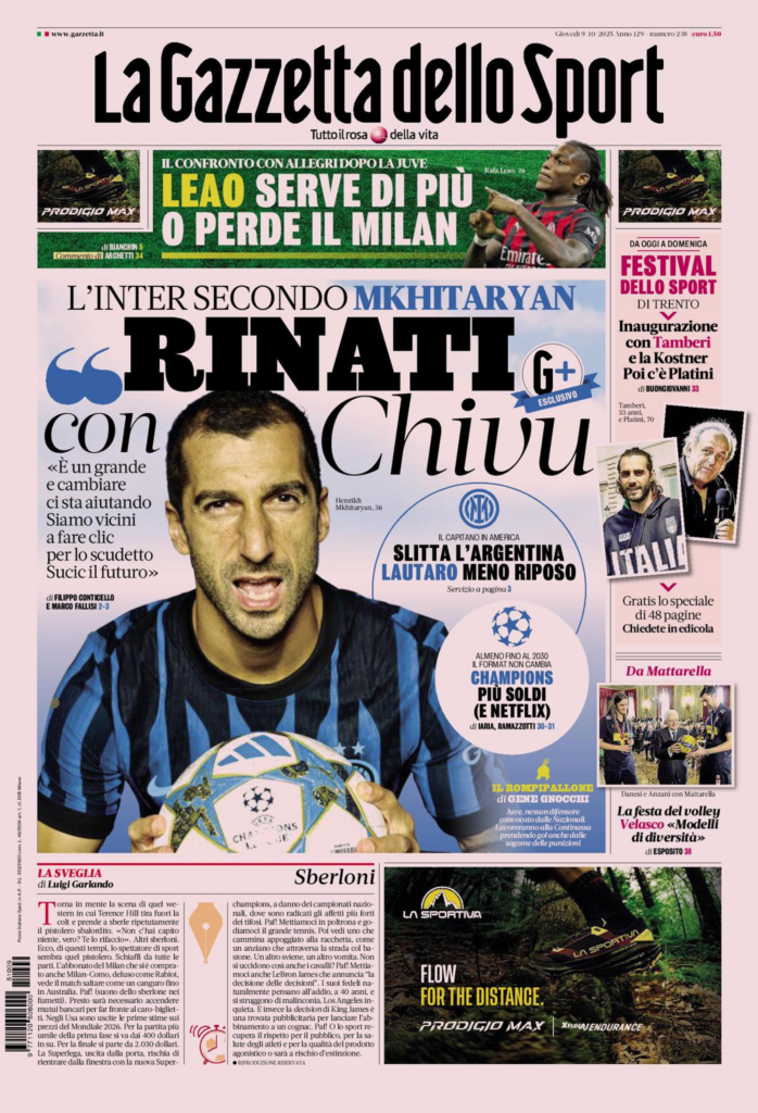 Queste le prime pagine dei quotidiani di Corriere dello Sport Stadio, Qs-La Nazione, Tuttosport e Gazzetta dello Sport in edicola questa mattina: