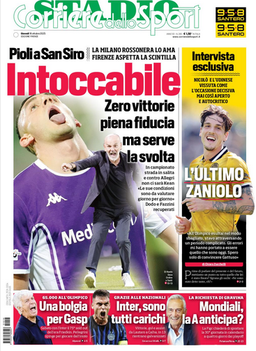 Queste le prime pagine dei quotidiani di Corriere dello Sport Stadio, Qs-La Nazione, Tuttosport e Gazzetta dello Sport in edicola questa mattina: