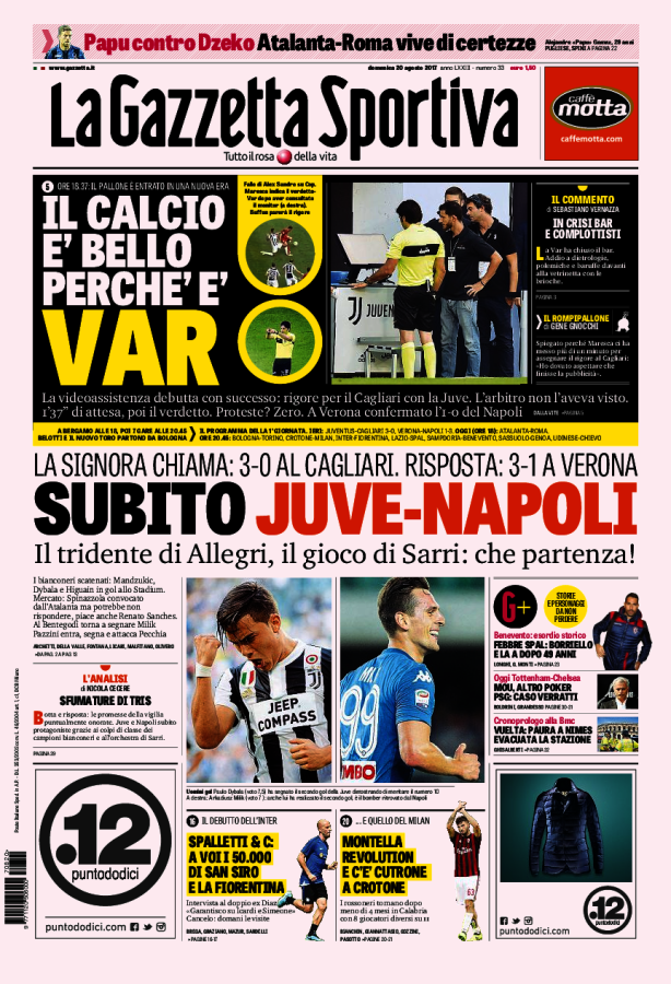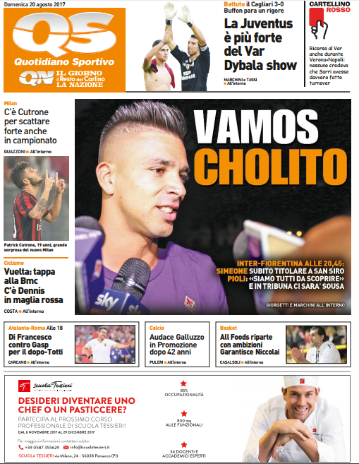Queste le prime pagine dei quotidiani di Corriere dello Sport, Corriere dello Sport Stadio, Qs, Tuttosport e Gazzetta in edicola questa mattina: