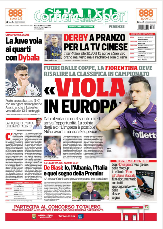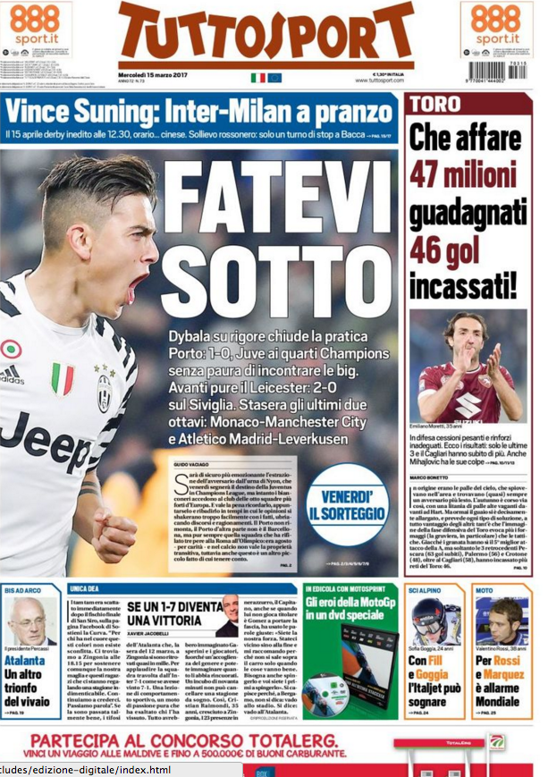 Queste le prime pagine dei quotidiani di Corriere dello Sport, Corriere dello Sport Stadio, Qs, Tuttosport e Gazzetta in edicola questa mattina: