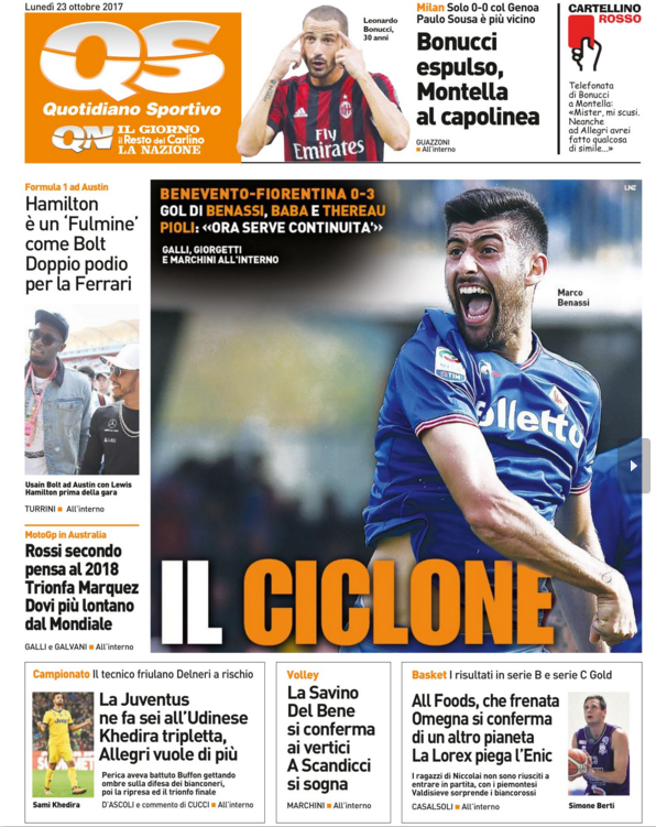 Queste le prime pagine dei quotidiani di Corriere dello Sport, Corriere dello Sport Stadio, Qs-La Nazione, Tuttosport e Gazzetta dello Sport in edicola questa mattina: