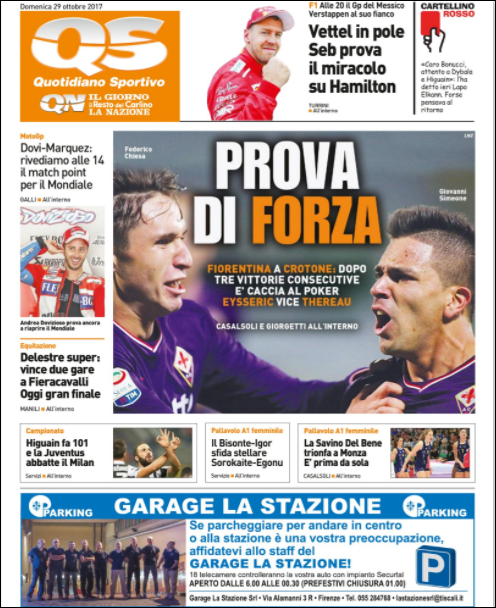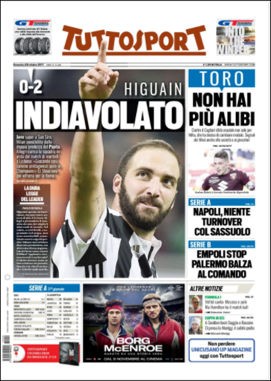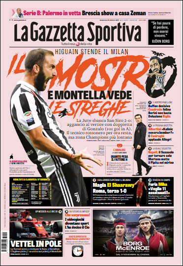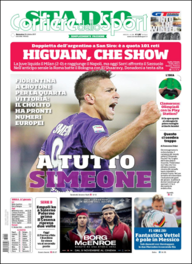 Queste le prime pagine dei quotidiani di Corriere dello Sport, Corriere dello Sport Stadio, Qs-La Nazione, Tuttosport e Gazzetta dello Sport in edicola questa mattina: