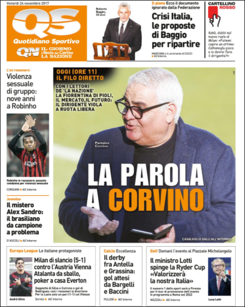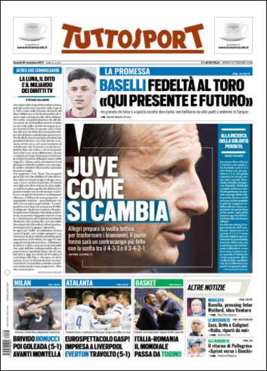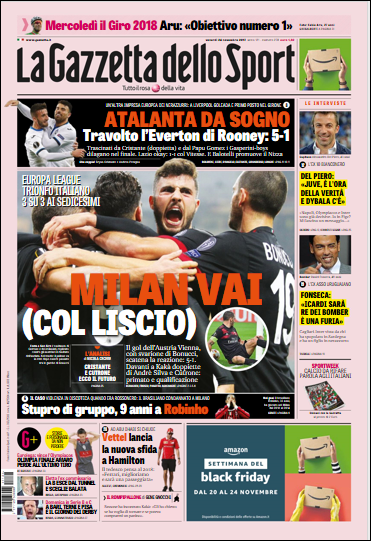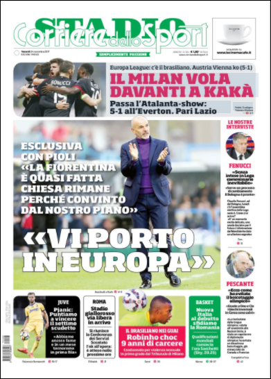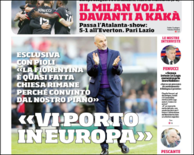 Queste le prime pagine dei quotidiani di Corriere dello Sport, Corriere dello Sport Stadio, Qs-La Nazione, Tuttosport e Gazzetta dello Sport in edicola questa mattina:
