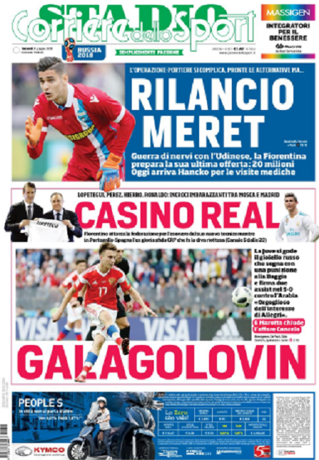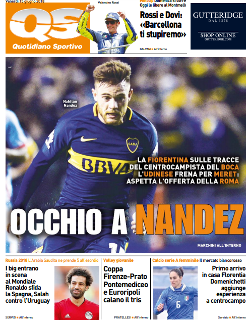 Queste le prime pagine dei quotidiani di Corriere dello Sport, Corriere dello Sport Stadio, Qs-La Nazione, Tuttosport e Gazzetta dello Sport in edicola questa mattina: