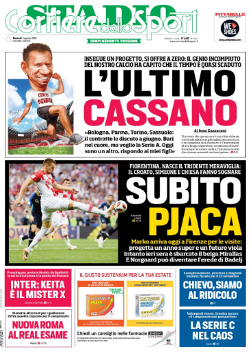 Queste le prime pagine dei quotidiani di Corriere dello Sport, Corriere dello Sport Stadio, Qs-La Nazione, Tuttosport e Gazzetta dello Sport in edicola questa mattina: