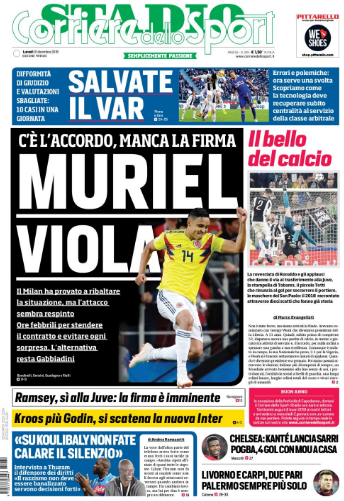 Queste le prime pagine dei quotidiani di Corriere dello Sport, Corriere dello Sport Stadio, Qs-La Nazione, Tuttosport e Gazzetta dello Sport in edicola questa mattina: