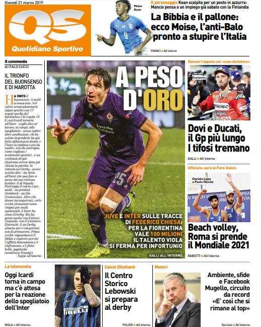 Queste le prime pagine di Qs-La Nazione, Stadio, Gazzetta, Corriere dello Sport, Tuttosport in edicola questa mattina:
