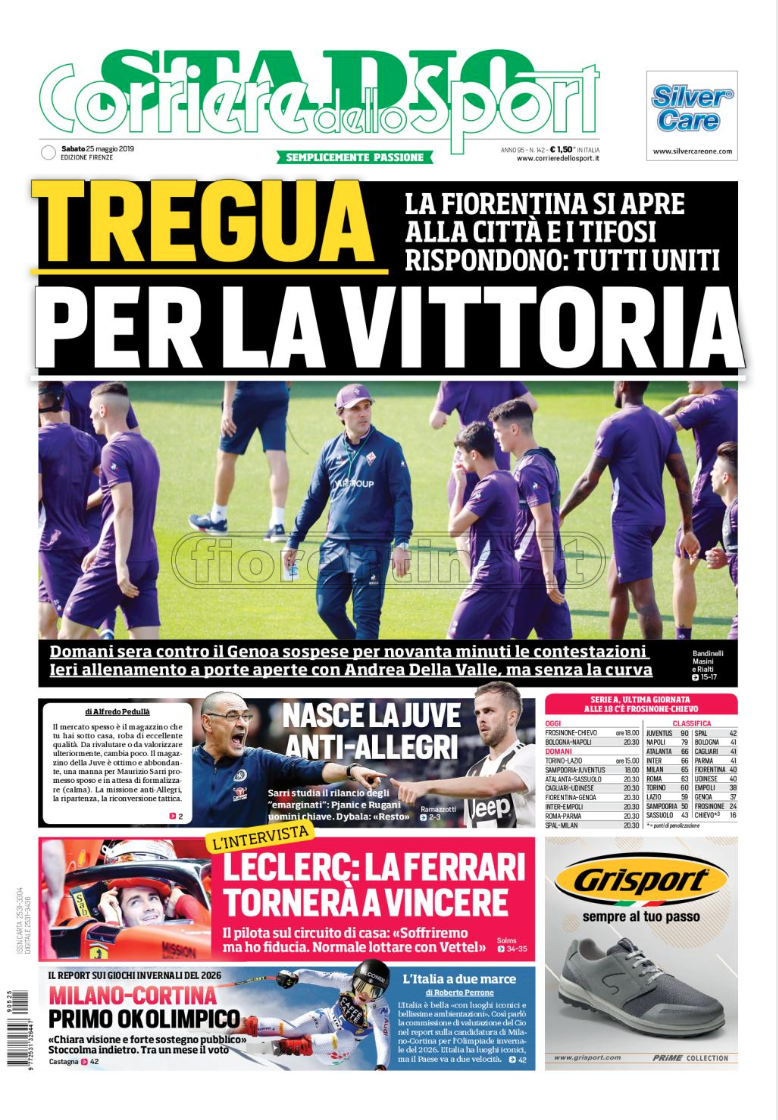 Queste le prime pagine dei quotidiani di Corriere dello Sport, Corriere dello Sport Stadio, Qs-La Nazione, Tuttosport e Gazzetta dello Sport in edicola questa mattina: