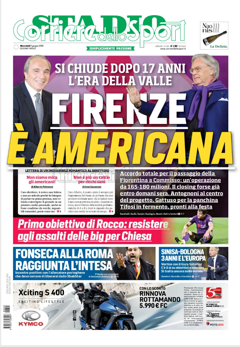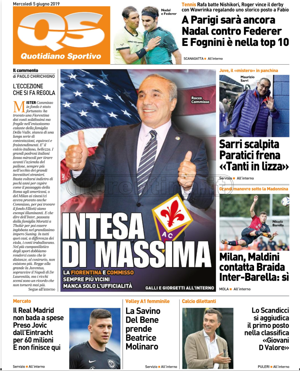 Queste le prime pagine dei quotidiani di Corriere dello Sport, Corriere dello Sport Stadio, Qs-La Nazione, Tuttosport e Gazzetta dello Sport in edicola questa mattina: