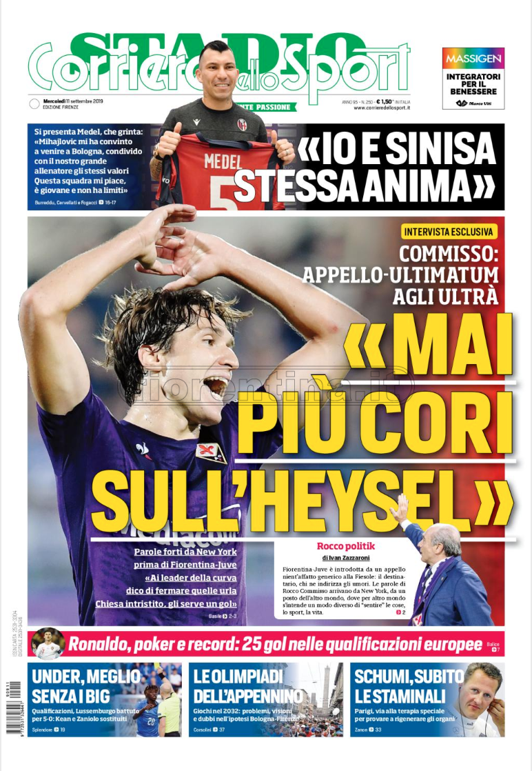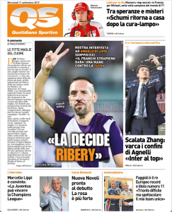 Queste le prime pagine dei quotidiani di Corriere dello Sport, Corriere dello Sport Stadio, Qs-La Nazione, Tuttosport e Gazzetta dello Sport in edicola questa mattina: