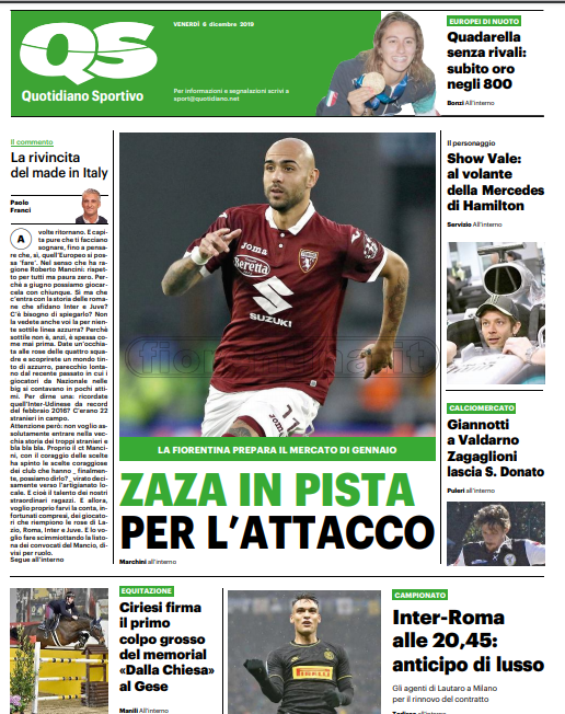 Queste le prime pagine dei quotidiani di Corriere dello Sport, Corriere dello Sport Stadio, Qs-La Nazione, Tuttosport e Gazzetta dello Sport in edicola questa mattina: